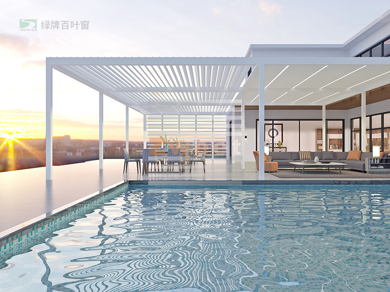 綠牌頂面遮陽防雨百葉房系統(tǒng)設計簡潔典雅,有多種顏色可供自由選擇,可與各種建筑風格相協(xié)調,不論是當代風格,現(xiàn)代風格,亦或是古典風格;不論是中國風格,或是歐美風格。