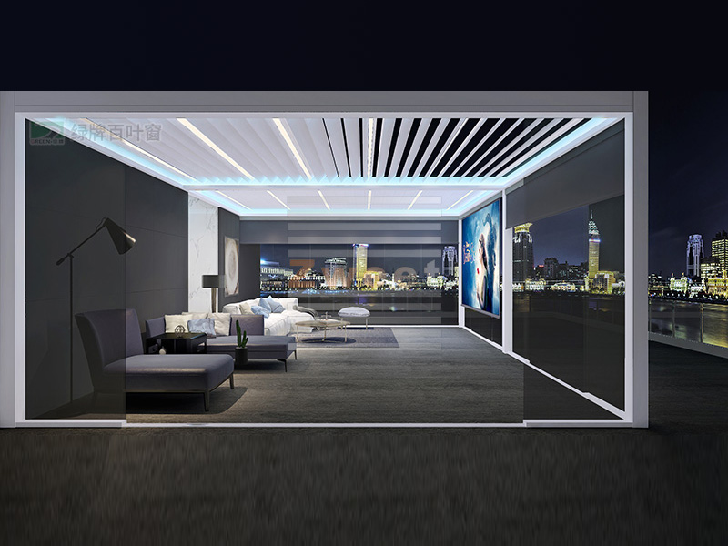 綠牌頂面遮陽防雨百葉房系統設計簡潔典雅,有多種顏色可供自由選擇,可與各種建筑風格相協調,不論是當代風格,現代風格,亦或是古典風格;不論是中國風格,或是歐美風格。